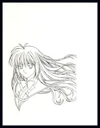 I wasn't absolutely sure, at the time I bid on these, what they were. The auction picture was rather bad, so I couldn't tell if they were cels or sketches or what. But, from the auction descriptions, it seemed like they were some sort of hanken artwork. I totally fell in love with one of the auction images in this particular lot, so I tossed my hat into the ring.