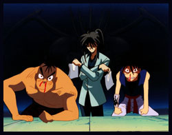 Sounds pretty good right? Yeah, well, perhaps in theory. In reality, when you're tossed together with a group of folks that you might not even like on any given day, it can be damn hard to pull together. And, the Hokage are no exception to that rule. Still, in the end, they manage to get it all together and win one for the good guys. And, they all do it without making too many comments on Domon's choice of battle gear, which, I think, takes more than your average share of moral fortitude. Oh yeah ... if I was on their team, I'd feel oh-so-much-more confident just knowing the gorilla-looking guy in the tiger-striped spandex was on my side. So much more confident.