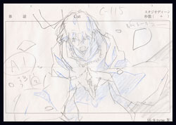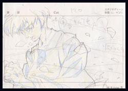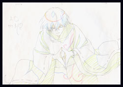 About Rilezu Cels: As you can see from the small sketch presence in here, Tactics, like many current animes, was a CG show. This means it was created without the use of traditional animation cels. Instead, the studio offered post-production cels called Rilezu. These cels are created from production materials. They are done by hand, and they are one of a kind originals. Often, they will come with a matching copy background. Sometimes, they will come with the douga (sketch) used to create them.