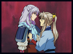 About Rilezu Cels: Saiunkoku, like many current animes, was a CG show. This means it was created without the use of traditional animation cels. Instead, the studio offered post-production cels called Rilezu. These cels are created from production materials. They are done by hand, and they are one of a kind originals. Often, they will come with a matching copy background. Sometimes, they will come with the douga (sketch) used to create them.