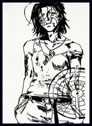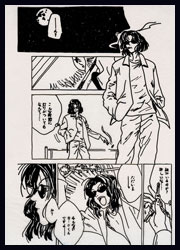 As the title suggests, this section contains fan cels based on manga images. Or fanart done in a sort of modified "manga style" that I've adapted from screencaps or other sources. Overall, I really like the look of this type of artwork. I find the heavy blacks to be very graphic and dramatic, and I love the high contrast to it. I also enjoy the challenge of trying to get the basic look of the image I want by using only one color.